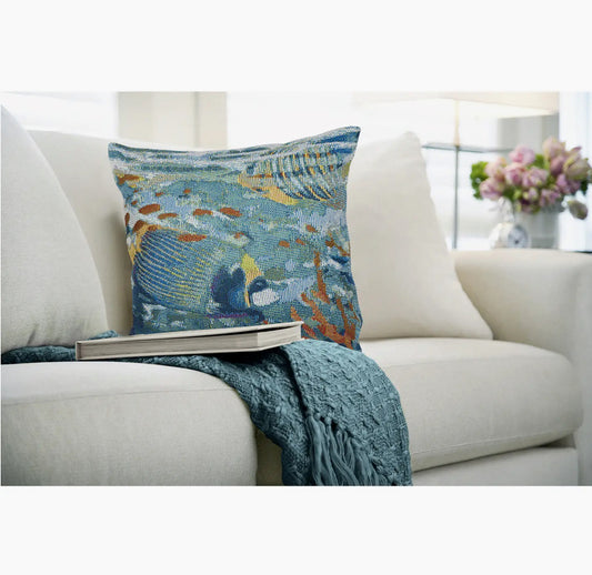 Marina Secret Garden Indoor/Outdoor Pillow Aqua