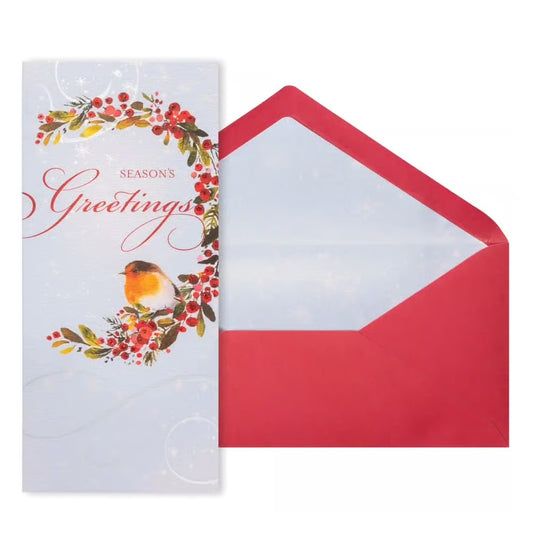 Robin On Grnery Berries 8Ct Boxed Christmas Cards