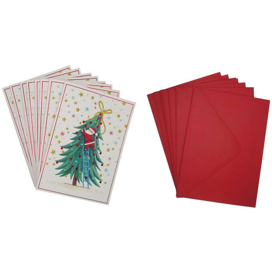 Santa on Ladder with Tree 8 Count Boxed Christmas Cards