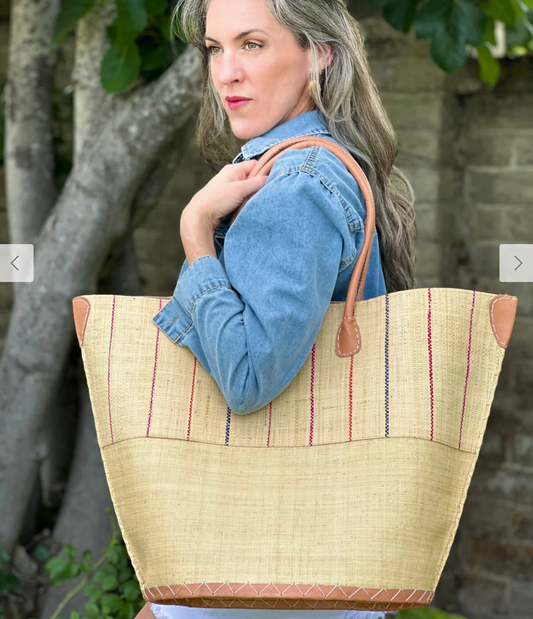 Santa Cruz Two Tone Pinstripes Large Straw Tote Bag
