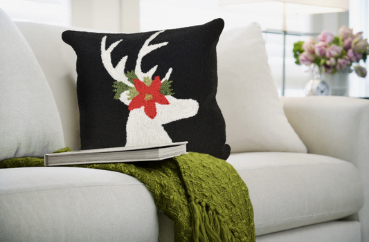 Frontporch Reindeer Indoor/Outdoor Pillow Black