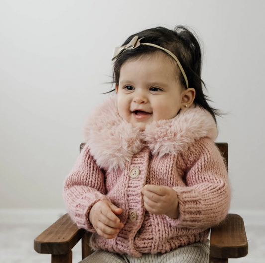Fur Collar Rosy Cardigan Sweater for Baby & Toddler