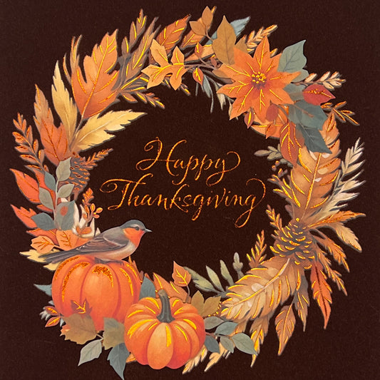 Handmade Wreath with Pumpkins Thanksgiving Card