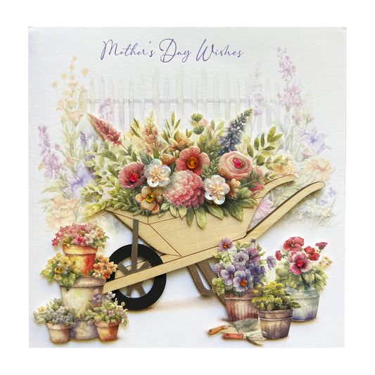 Handmade Flowers and Wheelbarrow Mother's Day Card