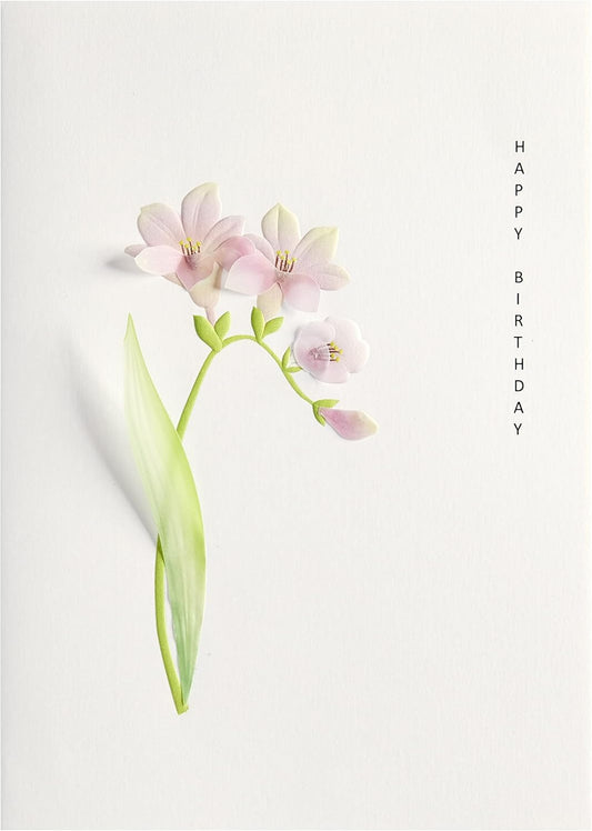 Pink Flowers with Leaves Birthday Card
