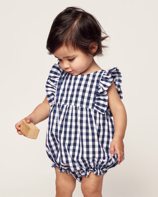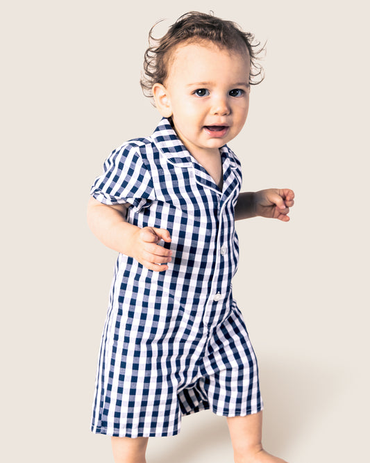 Baby's Twill Summer Romper in Navy Gingham