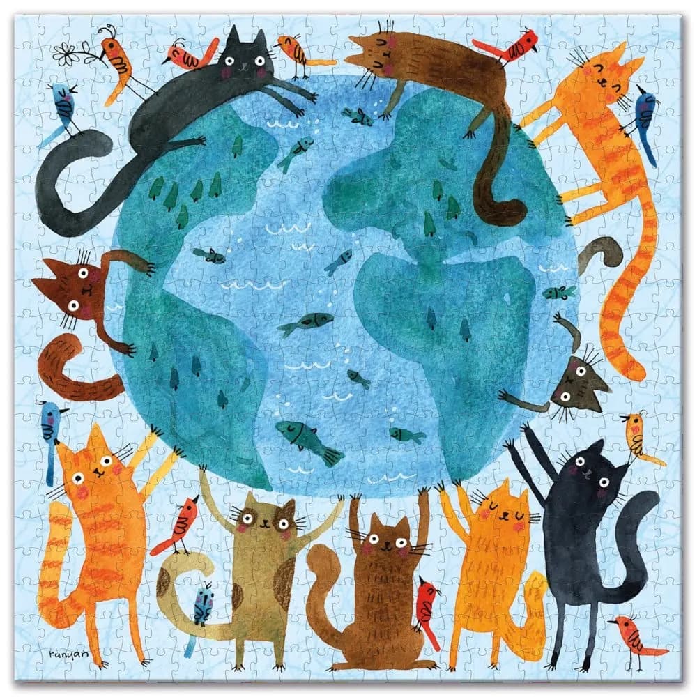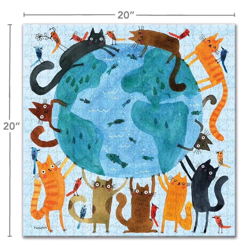 Unleash your creativity with the Curious Cats Puzzle by NIQUEA.D, featuring the whimsical artwork of Terry Runyan! This 500-piece puzzle showcases a playful collection of colorful, curious cats, each with their own unique personality and charm. The lively scene is full of intricate details and vibrant hues that will engage your mind and bring a smile to your face as you piece it together. Once completed, the puzzle measures 20" x 20", making it a perfect addition to your space. The high-quality pieces fit securely and assemble smoothly, while foil accents add a delightful touch of sparkle to the design. The puzzle comes with a keepsake box and a resealable, dust-free bag for easy storage and organization. A fun and relaxing challenge, this puzzle is perfect for cat lovers and anyone who enjoys a creative escape.