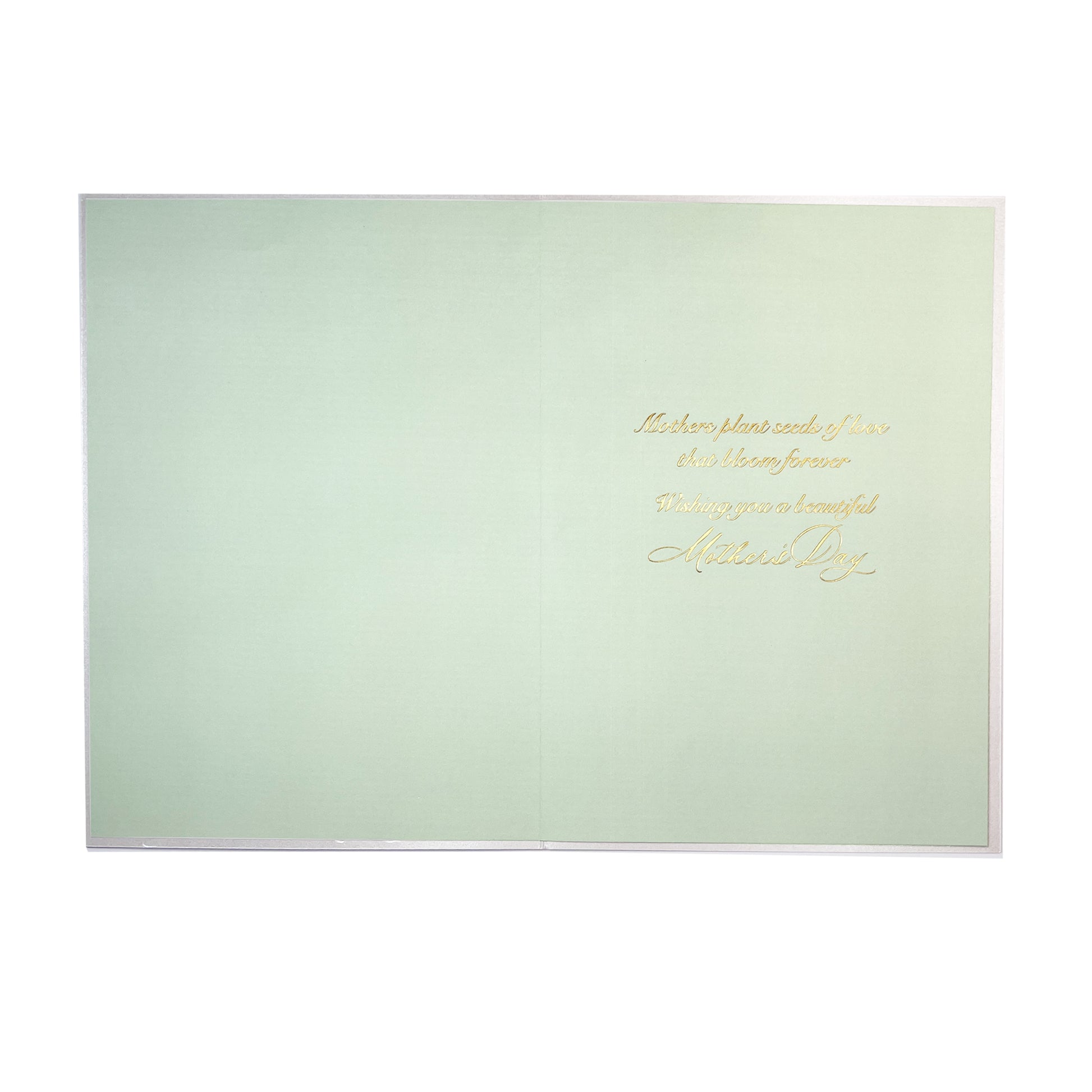 Sentiment inside: Mothers plant seeds of love that bloom forever. Wishing you a beautiful Mother's Day