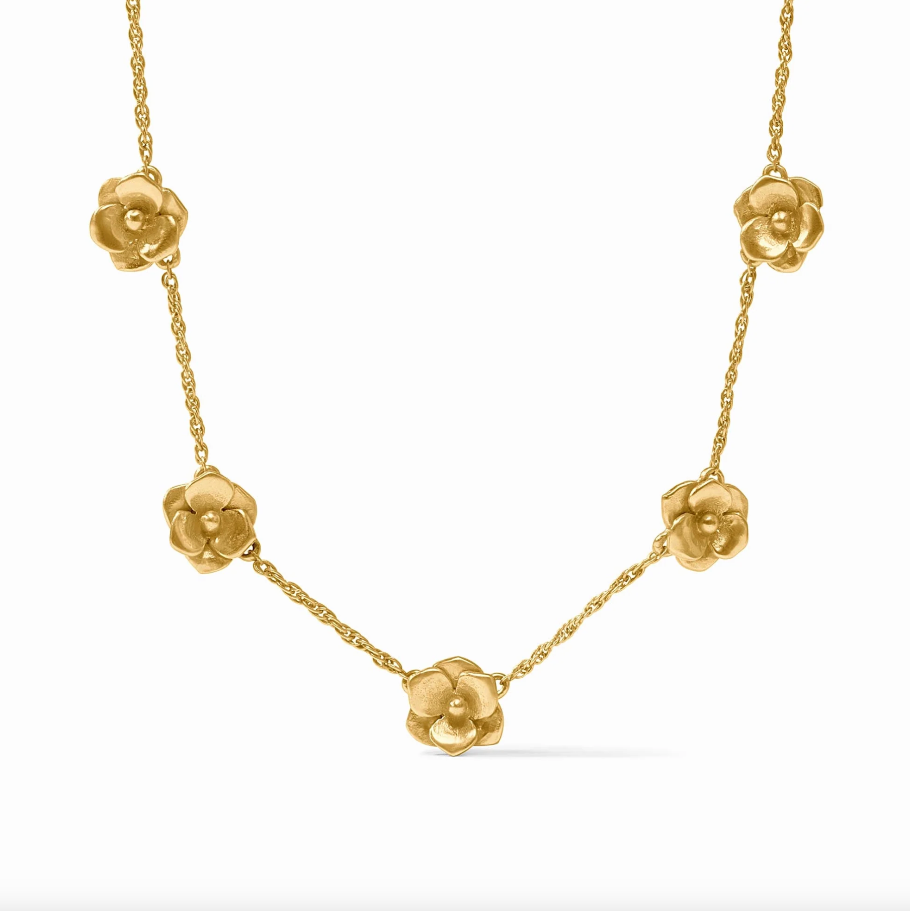 Each golden flower lining this necklace's delicate rope chain blossoms in the sun like a tender kiss.