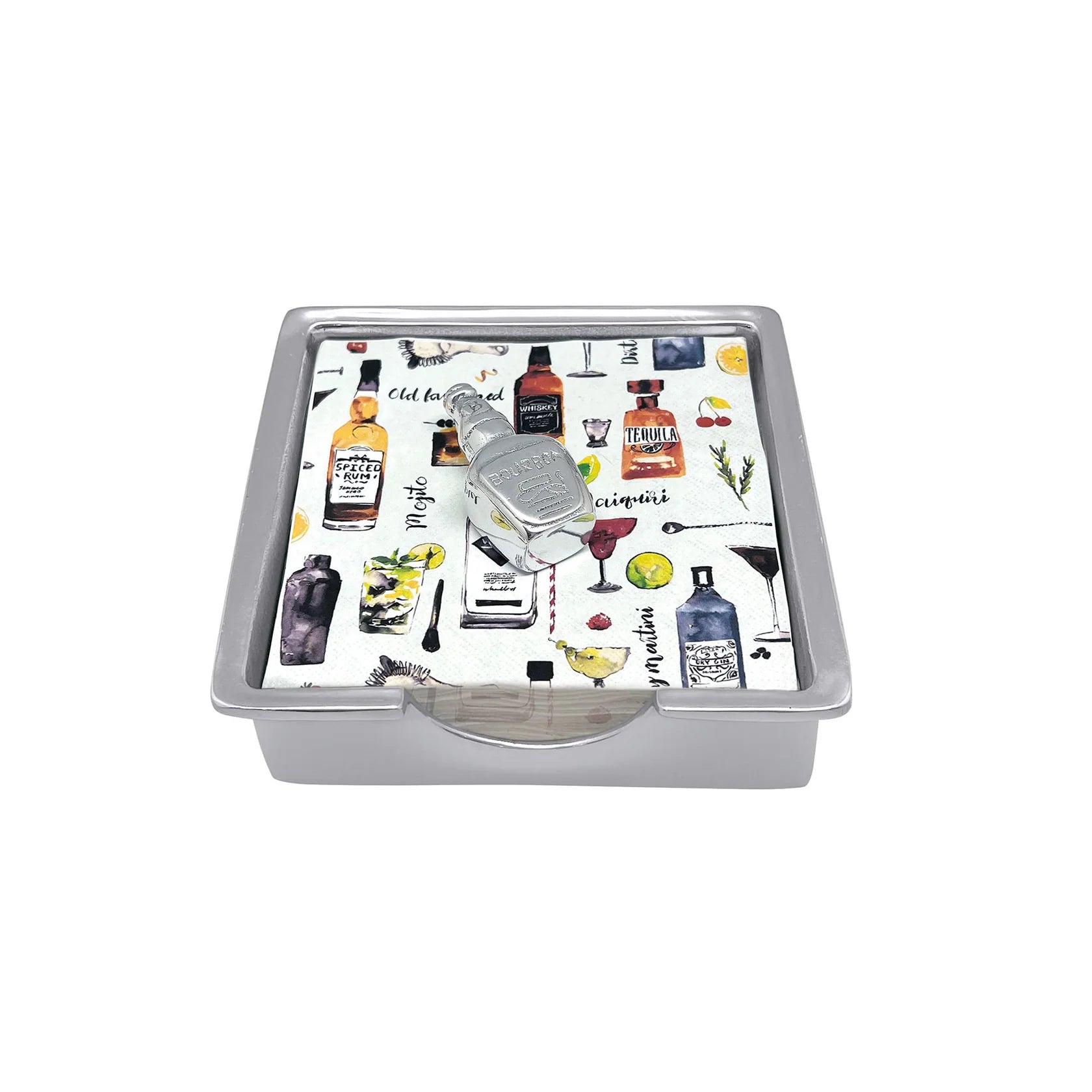 We like our whiskey neat. Mellow out with the Bourbon Beaded Napkin Box. A smooth Bourbon Bottle Napkin Weight sits atop distinctive, playful cocktail napkins in Mariposa's signature Beaded Napkin Box. Handcrafted from 100% recycled aluminum.