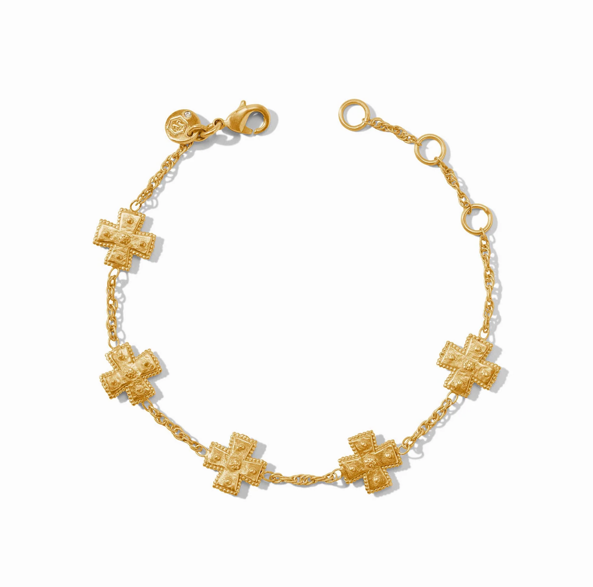 Hand-hammered crosses decorated with golden beads, connected with delicate gold rope chain.