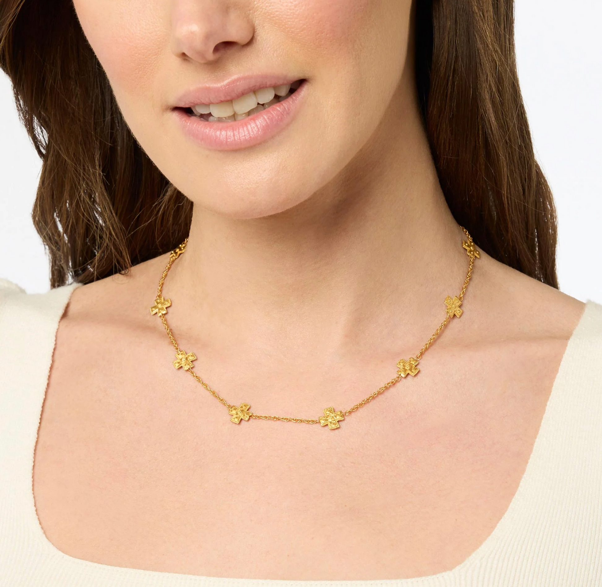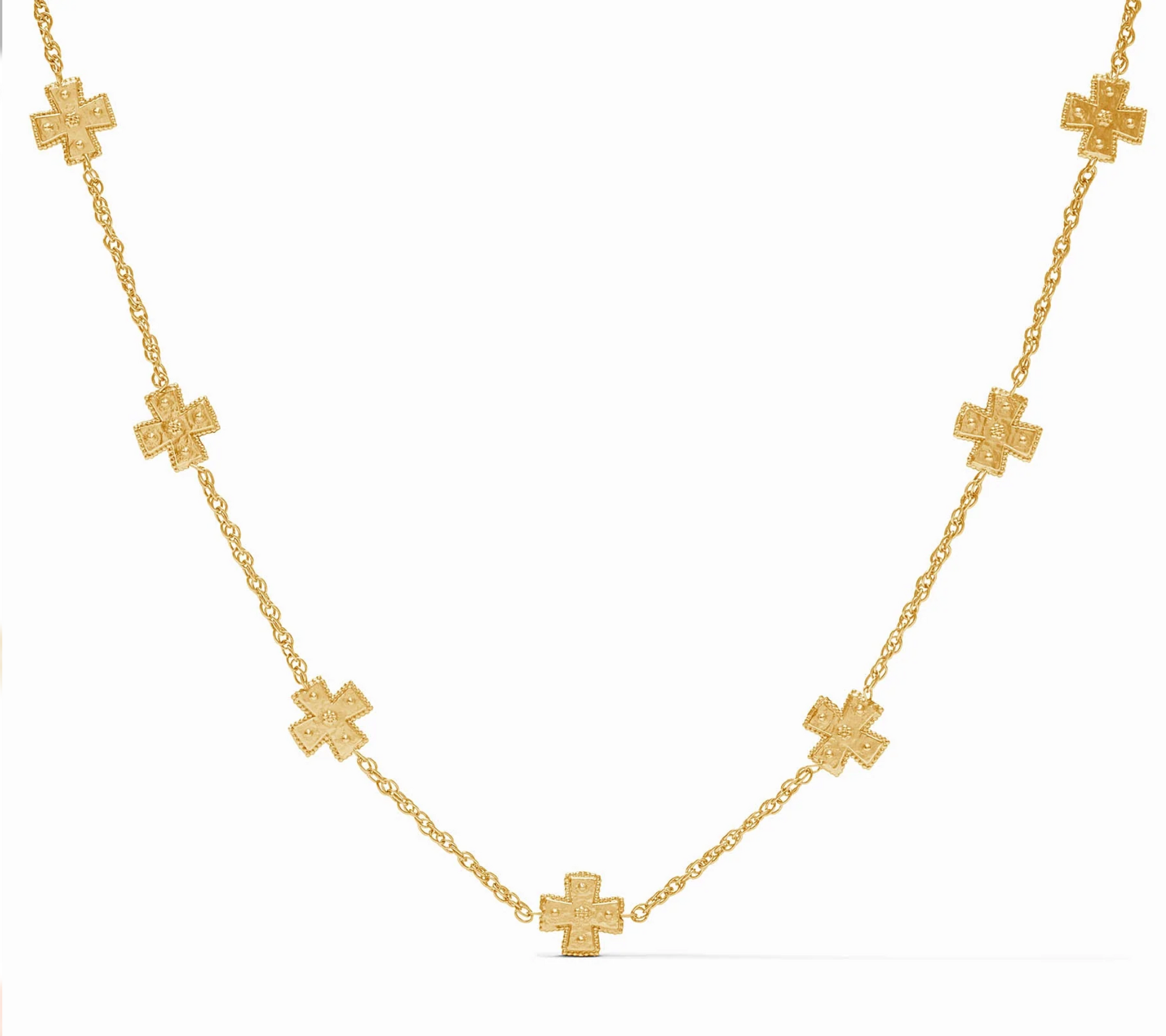 Hand-hammered crosses decorated with golden beads, connected with delicate gold rope chain.