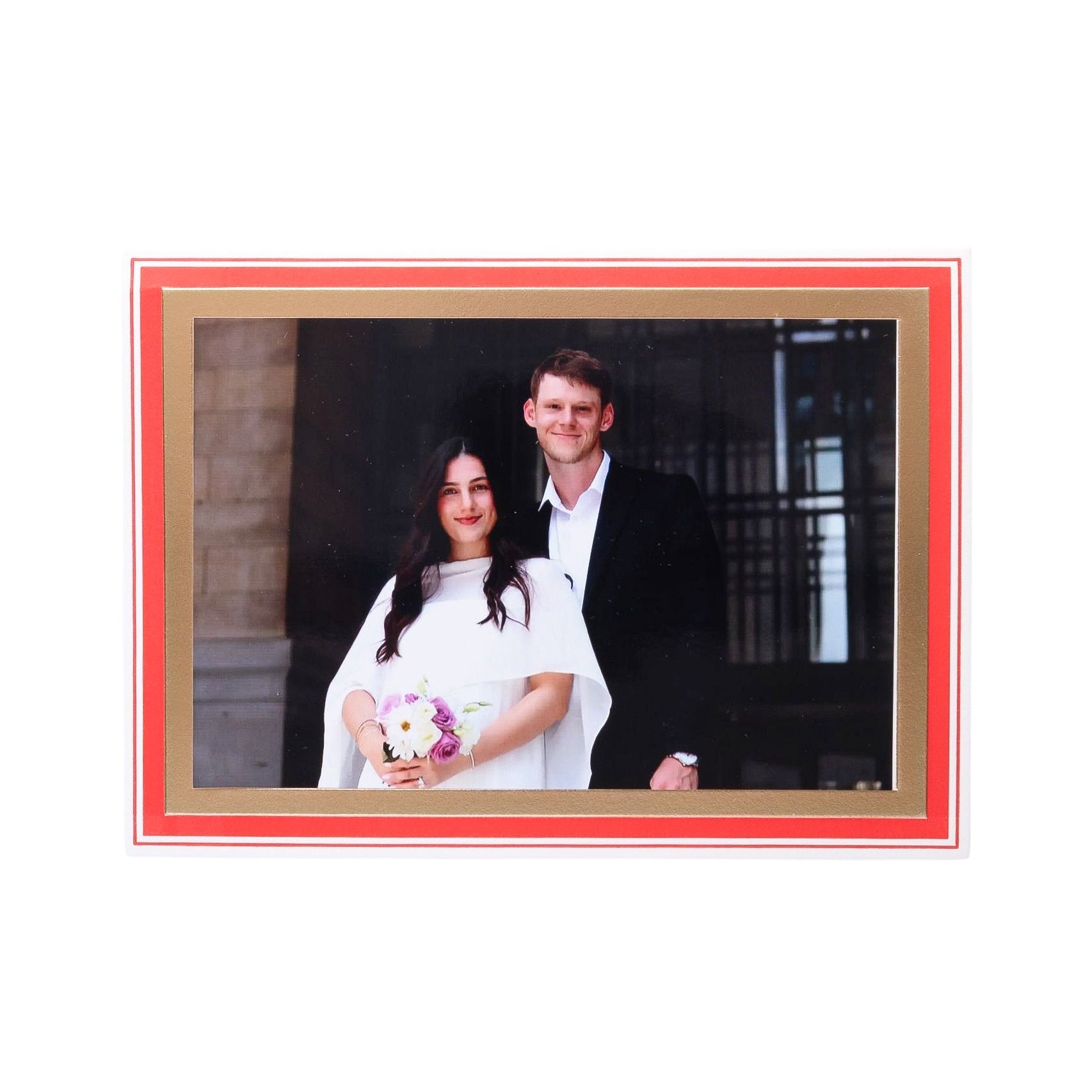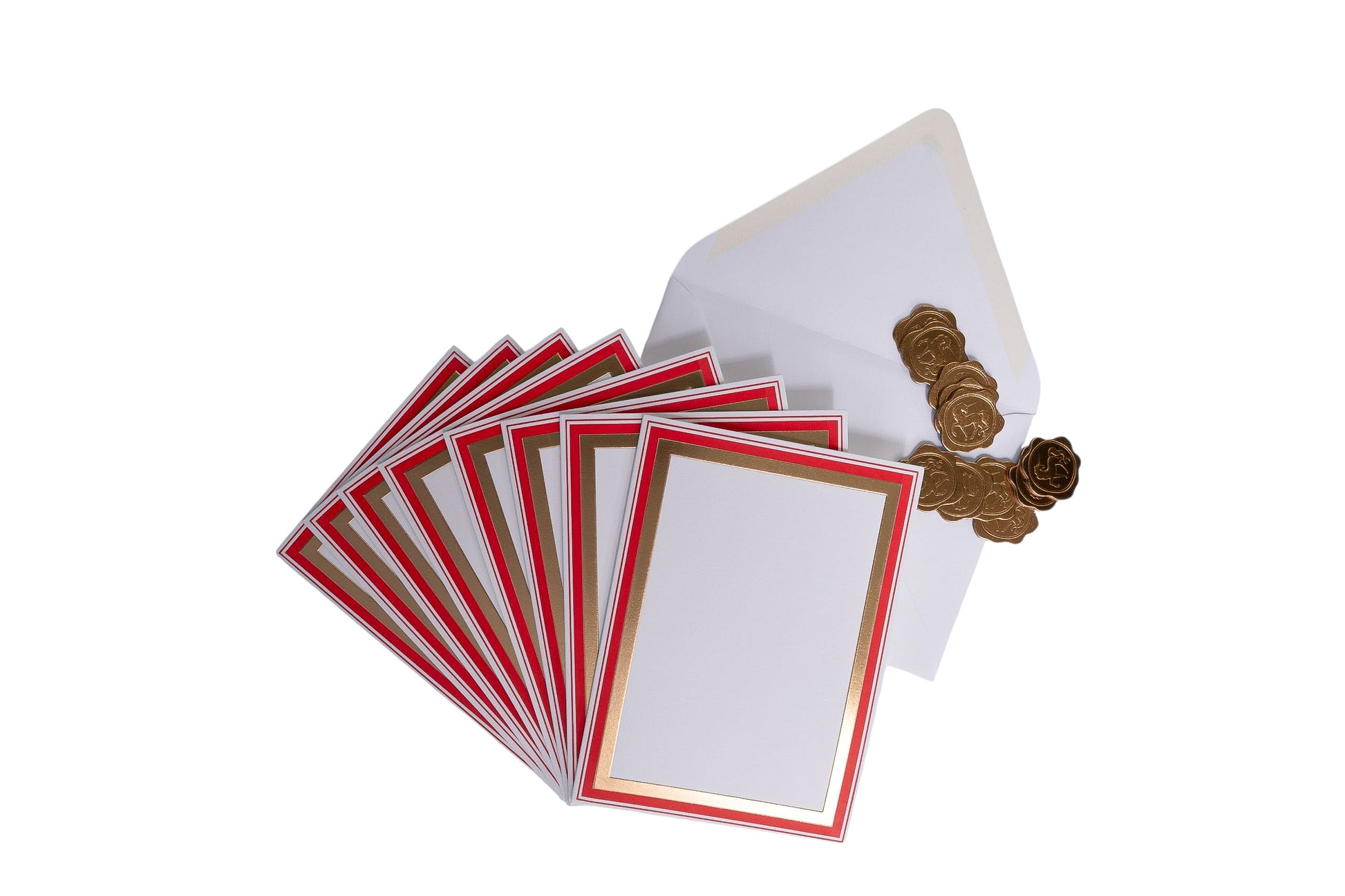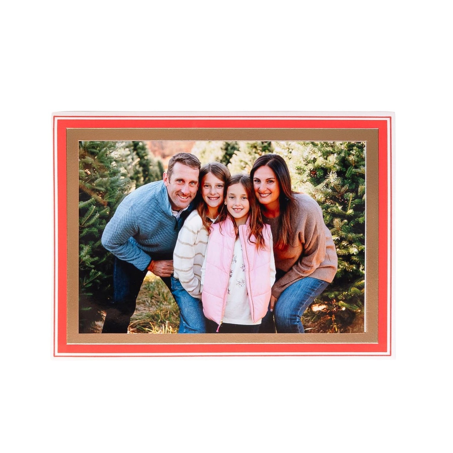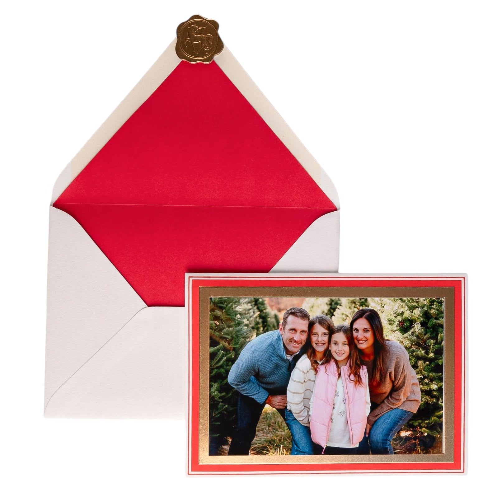 CUSTOM Embossed Red and Gold Foil Boarder Holiday Photo Card Set