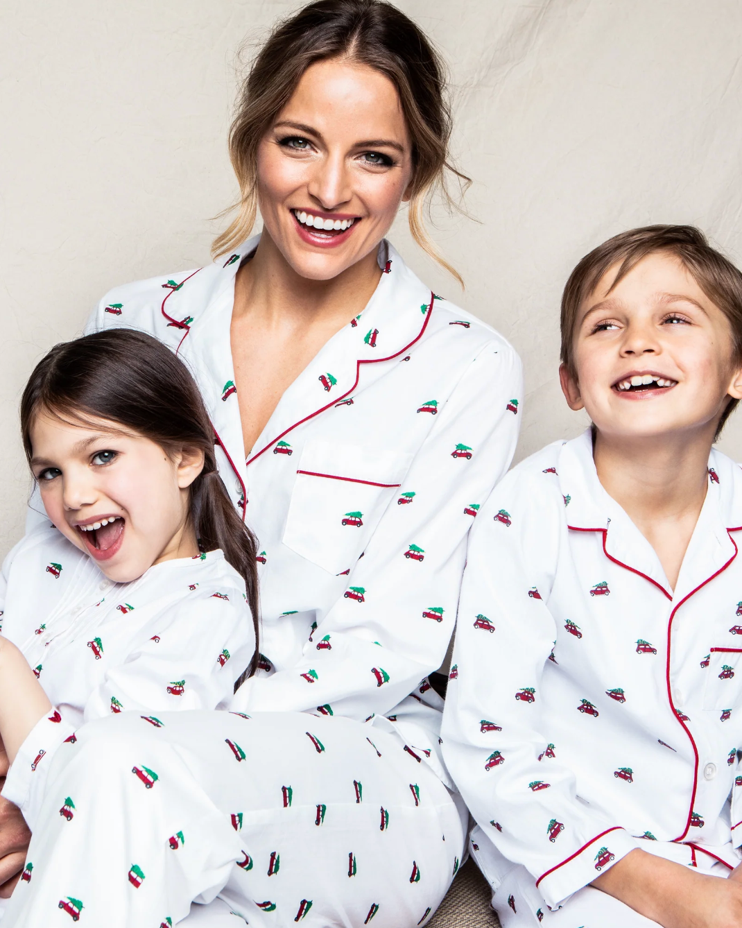 Red cars and mini trees will take you on a Holiday Journey. Nostalgic of holiday cheer, this print will bring you to the best time of the year. This classic pajama set is accented with red piping and finished with logo buttons.