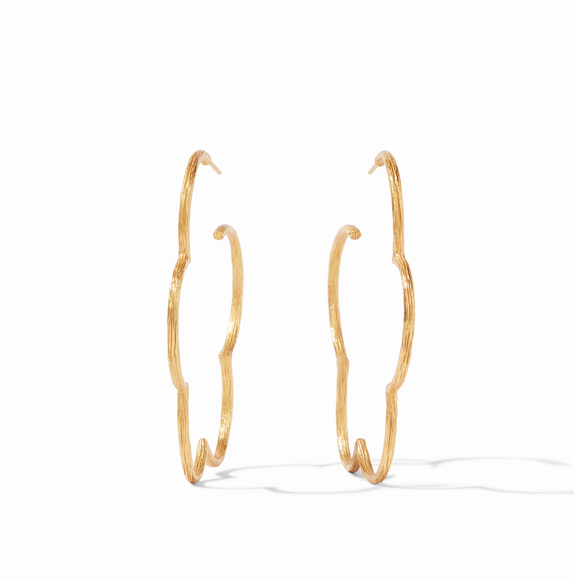 A floral silhouette lends a playful spin to this slender hoop with a golden etched finish.