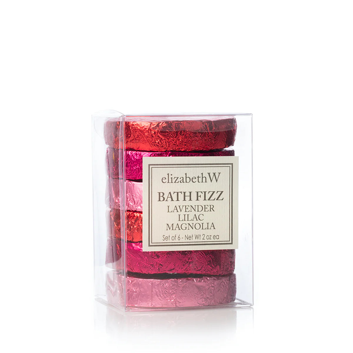 Our handmade fragrant fizz tablets are indulgently fun. Fill a tub with warm water and as you soak, drop in a tablet and watch it fizz. As the water softens, relax, ease tired muscles, and enjoy the sparkles. Packaged perfect for gift giving in a clear box with pink and red foils.